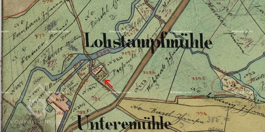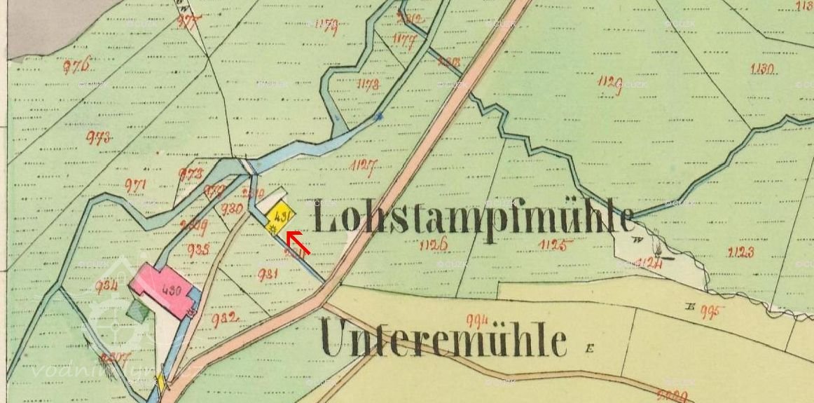 Lohstampfmühle, bývalé č.p. 384, je uváděn jako mlýn, byla u něho stoupa. Posledním majitelem byla krajkářská firma Zapp z Vejprt.