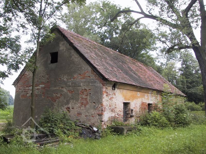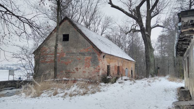 hospodářská budova v areálu, 02 2019, © Jana Sommrová, (Prvky na obrázku: jez, stavidlo)