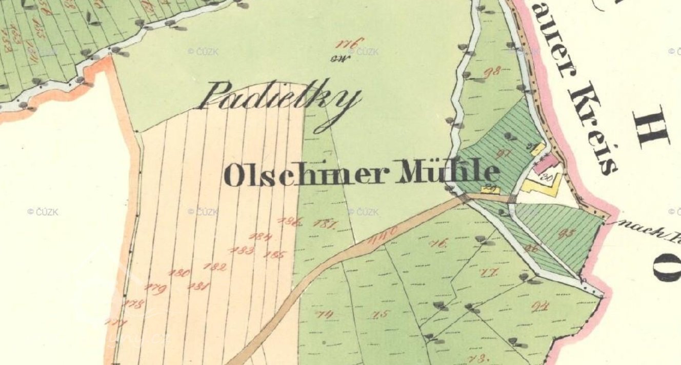 V roce 1930 byla majitelkou mlýna a pily Amálie Stratilová. Potok Kotojedka se nazýval Olšinka. Mlýn je uváděn pod obcí Skržice.