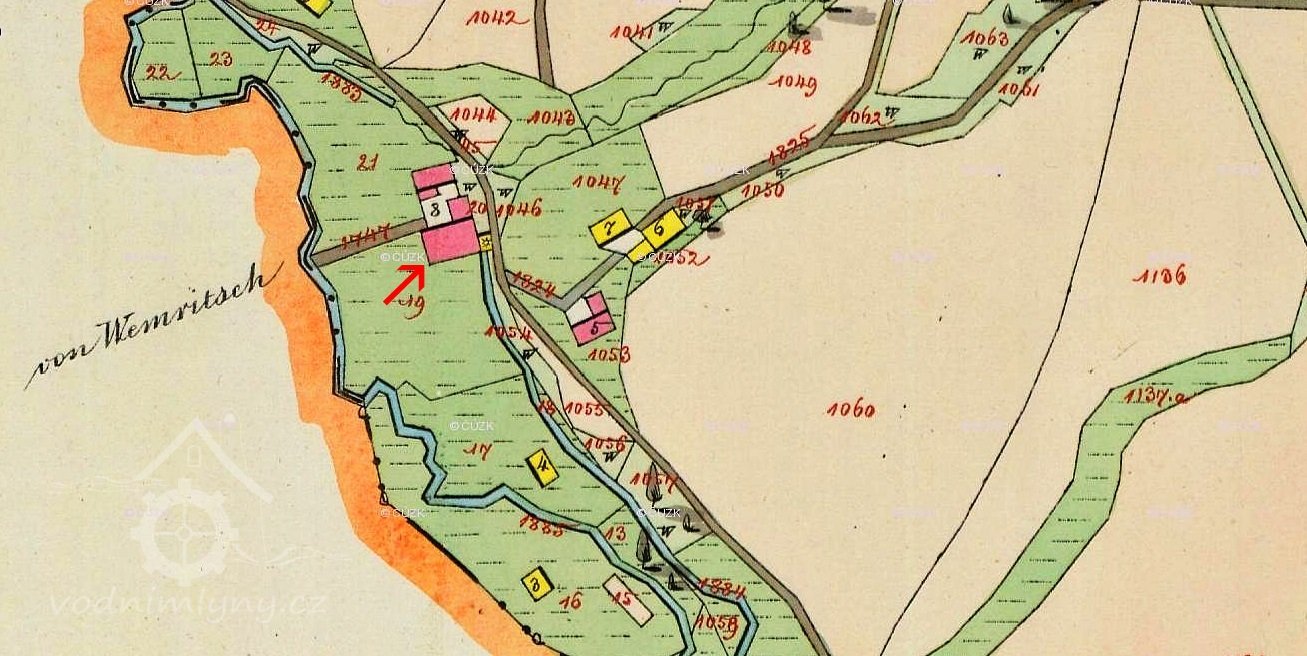 1848 mlynář Koudelka nechal zhotovit kříž u mlýna