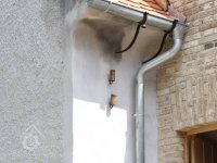 budova sýpky - V průčelí, detail holubníku pod pavlačí, 03 2009, © Hana Marie Hermanová, (Prvky na obrázku: pavlač, balkón)