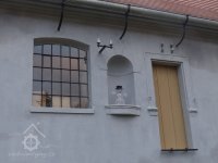 Detail plastické výzdoby okenního ostění, 11 2022, © Jan Moravec, (Prvky na obrázku: okno, plastická omítková výzdoba fasád a štítů)