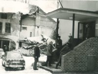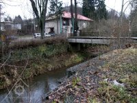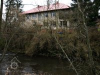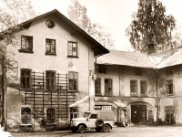 Mlýn s pilou na Olešce při silnici ze Semil do Lomnice patříval bořkovskému mlynáři Strnádkovi a měl čp. 50, po začlenění do Podmoklic dostal číslo 626. Od roku 1936 v něm sídlila Továrna křišťálových lustrů a uměleckého skla Jana Kořínka. Mlýn byl jako průmyslový podnik v roce 1954 znárodněn a sloužil nejdříve jako sklad Dřevony Česká Lípa, později jako provozní budova rozvodného závodu VČE Turnov. Bez potřebné údržby rychle chátral, takže už v polovině 60. let byl konstatován havarijní stav a mokré byty musely být postupně vystěhovávány. Fotografie pochází z doby před jeho demolicí roku 1975. (in) /Ivo Navrátil/