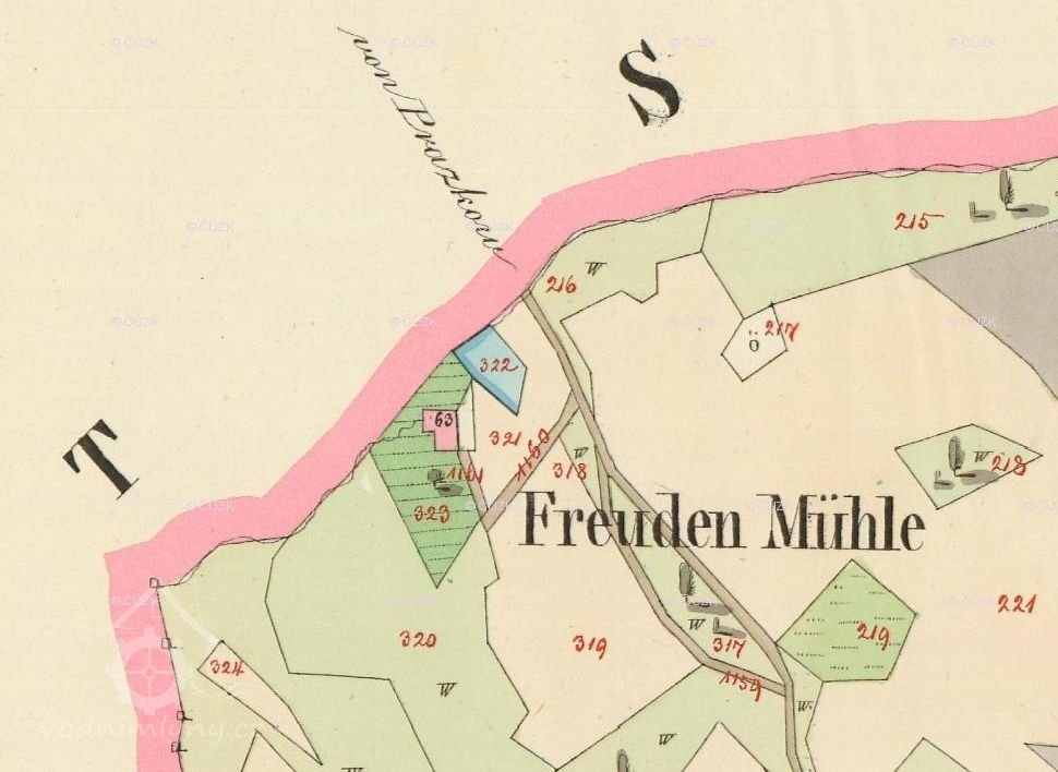 Asi 200 metrů pod Radostnou studánkou vede zhruba po vrstevnici úbočím od Prackova cesta Javorka, nebo chcete-li, Formanka. Tato cesta měla v historii celou řadu názvů. Kousek pod ní kdysi stával mlýn, zvaný podle studánky mlýnem pod Radostnou, podle pověsti byl postaven kolem roku 1780. Koncem toho století vyhořel a byl obnoven na jiném základě. Počátkem 19. století byl jeho majitelem František Šírek. Rodina Šírkova prodala mlýn jakémusi potomku starého rodu Hagenburchů. Po něm byl majitelem mlynář Vízner, pak tesař Kysela z „Kuchelny“. V Okresním archivu v Semilech se zachoval protokol z normování mlýna z 5. října 1881, krátce poté byl proveden i zápis ve Vodní knize. Mlýn v té době vlastnili Anna a Václav Kyselovi.