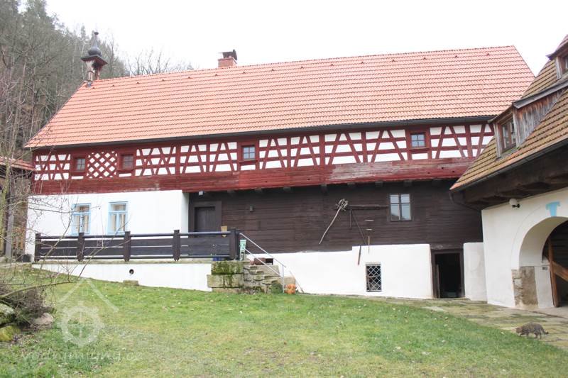 obytné stavení. Pohled od JZ., 01 2018, © Tomáš Kárník, (Prvky na obrázku: hrázděný štít)