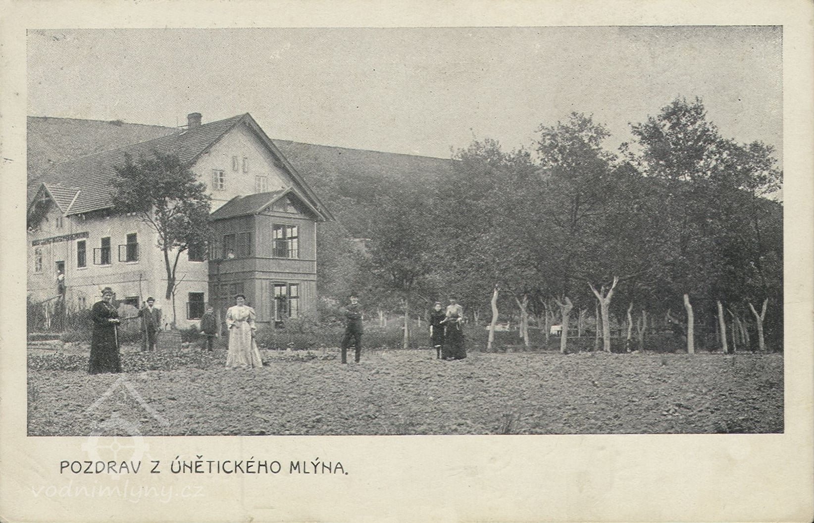 V Úněticích jsou v 16. století doloženy 2 mlýny - horní a dolní. Není jasné, ke kterému z obou mlýnů se zmínka o mlýnu z let 1125-1140 vztahuje.