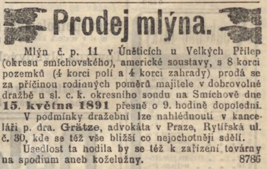 1610 v Úněticích 8 gruntů, dvě výsadní krčmy, dva mlýny a kovárna