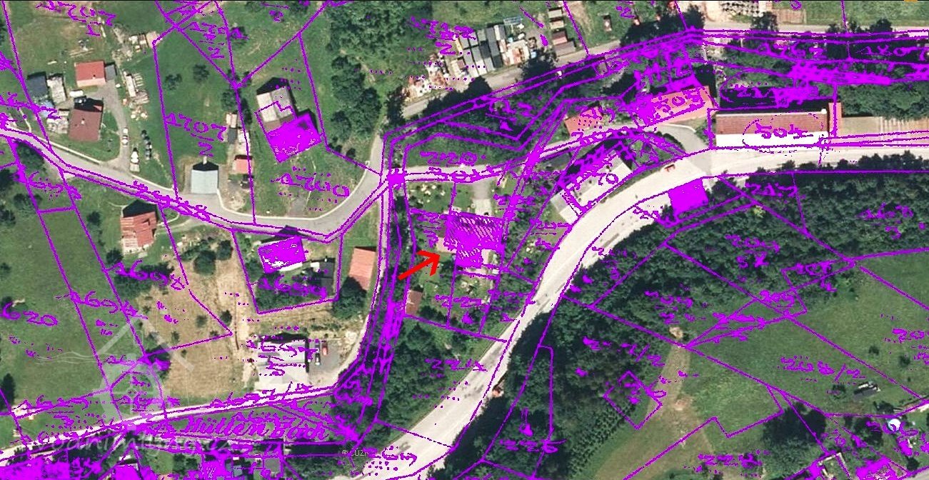 Mlýn se nacházel v zastavěném intravilánu protáhlé obce.