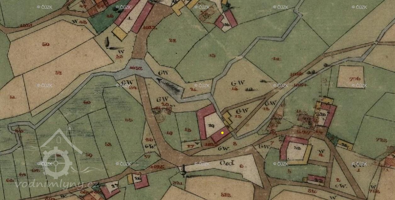 Popis závodu, hnací síla, počet HP, vnitřní strojní zařízení: vodní kolo, 12 HP, 1 dvoupárová stolice, 1 český kámen, 1 francouzský kámen