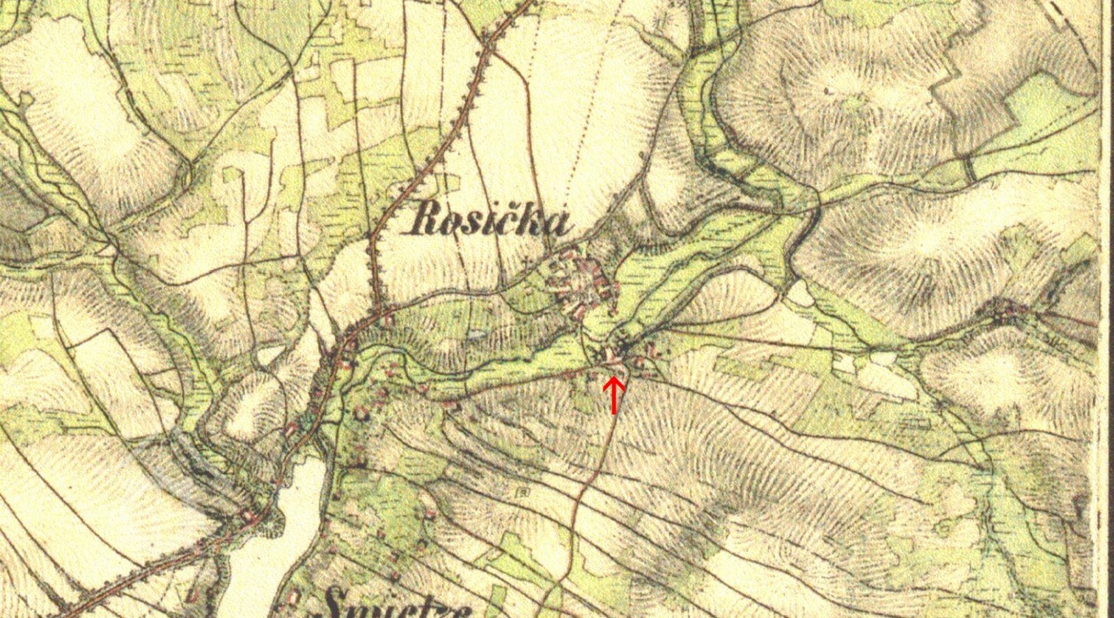 1581 rožmberský urbář pro panství choustnické: mlýn Rosička, mlynář Jiřík Malík drží 1/2 lámu, platí roční úrok 15 grošů, dává 1 slepici