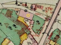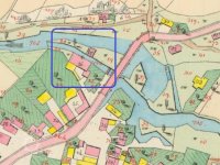 Když náhon z prutahu[!] tohoto vystoupí, veden jest po obecním pozemku č. par. 625 a dále mezi obecním pozemkem mlýnským č. parc. 27 pastv. a pozemkem mlýnským č. parc. 25 zahrada. Od splavu až k mlýnskému prahu má náhon 90 met. délky.