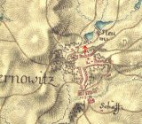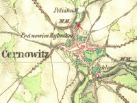 ...Melivo vozí se do šesti mlýnů ležících na dvou potocích. Z těch větší přitéká ode Lhotky a naplňuje nejprve rybník u mlýna na Vackově. Vackov je skupení jedenácti chalup kolem mlýna čtvrt hodiny cesty k východu od Černovic. Mlýn ten patříval před časy k Svatavě, ale r. 1596 k žádosti mlynáře Václava připojen jest od Petra Voka z Rozemberka k Černovicům. Blíže městu pod Vackovem protéká potok rybník u mlýna „Ťápalova“, kdež i pila se nalézá. Na SV. pod Moudrovem vzniká potok druhý, naplňuje rybníky „Hořejší“ a „Dolejší“ při mlýnech týchž jmen, ležících u samého městečka, odtud teče Předměstím a Pršínem, kdež je most kamenný se sochami sv. Jana Nepomuckého a sv. V8clava a při západní straně města běží do obory, kdež se spojuje s potokem prve dotčeným. Část vody shražená žene pod oborou mlýn „Šelichův“ a ještě dpleji naplňuje rybník hluboký s koupadlem u mlýna Louckých. V létech suchých potoky tak málo vody rybníkům dodávají, že jen po přestávkách, vždy až se rybník naplní, mlýti se může... (pep)