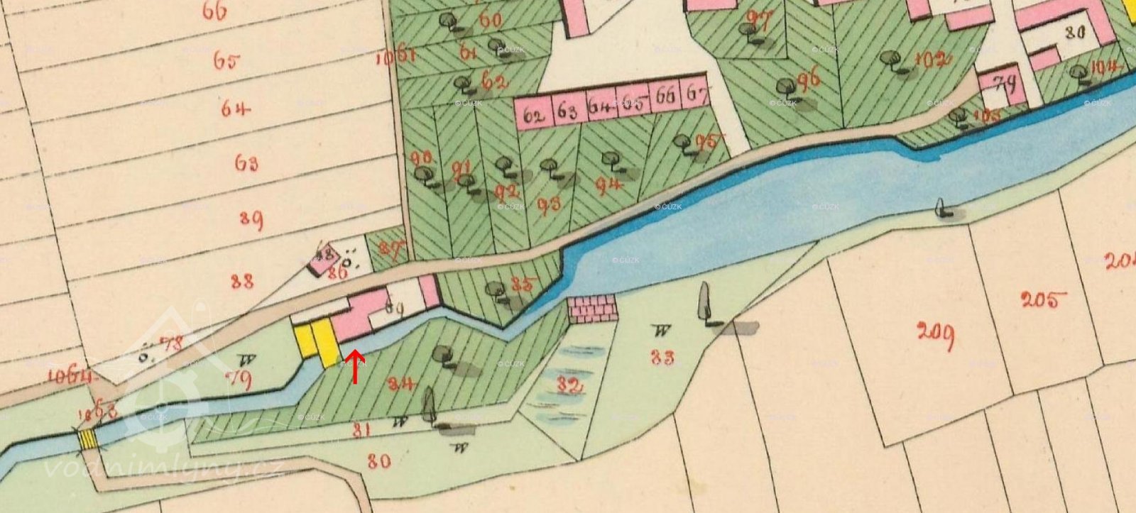 Stavítko od mlýna je 0.81m šir. a 0.48m vys.