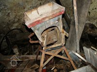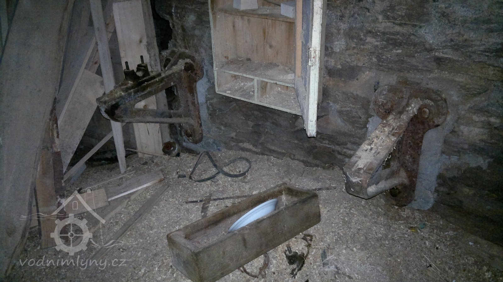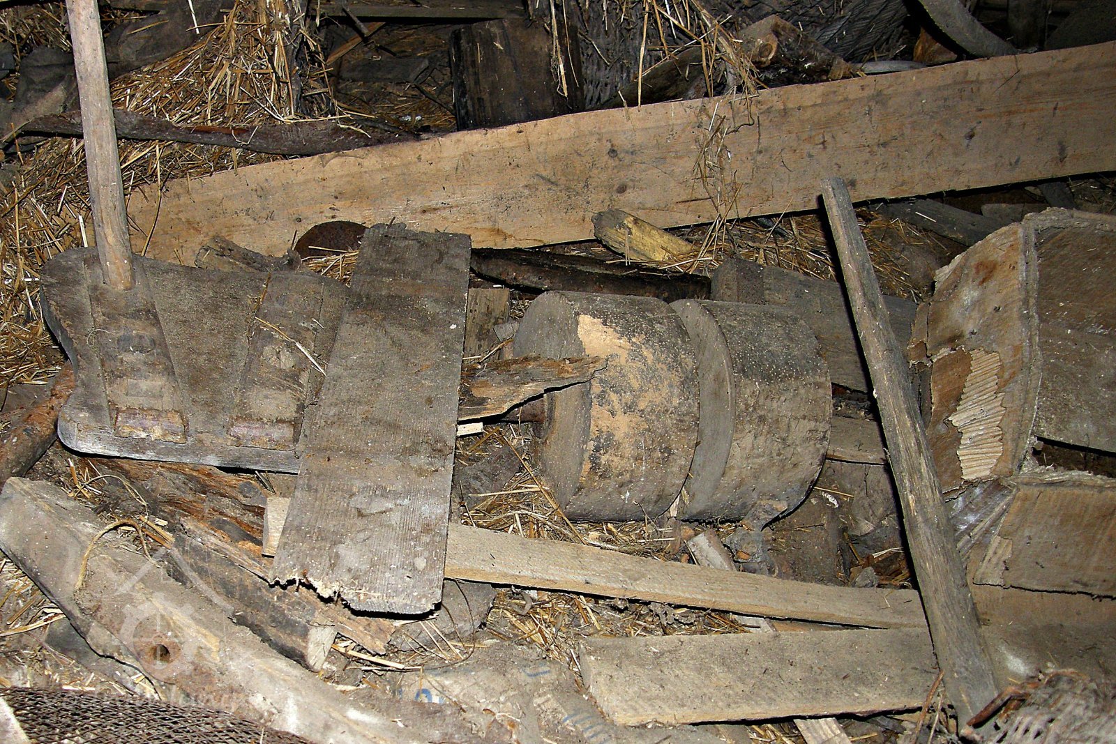 pozůstatek předlohové transmise s konzolovým uložením, 2015, © David Veverka, (Prvky na obrázku: transmise, řemenice, převody)