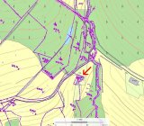 Parcely katastrální mapy užívané do poč. 50. let na podkladě současné základní mapy, cca 1950, © geoportal.gepro.cz