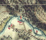 Na leteckém snímku z roku 1952 stojí mlýn ještě nepoškozen, zničen byl tedy až v pozdější době. (LR)
