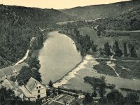 Kdo odtud chtěl dosáhnout protějšího břehu, ten použil převozu, ploché pramice, kterou ovládal převozník dlouhou tyčí. V tichých všedních dnech musel být volán - seděl obvykle na staré dřevěné lavici v zahradě hospody Krieg a čekal při sklence vína na svoje zákazníky. V nedělích a obzvláště na svatodušní svátky měli však převozníci čilý ruch. Vždy znovu jezdili z břehu na břeh a někdy to bylo dost veselé, protože v pramici se muselo stát. Žádný div, že se někteří kymácející se navzájem drželi a tak, zda chtěli nebo nechtěli, se seznamovali. Tam, kde pramice přistála, šla přímá cesta loukou a tato neměla v celém kraji sobě rovnou. Milovali jsme ji v zářivém jitřním svitu, v horku poledne, i ve zlatém večerním oparu.