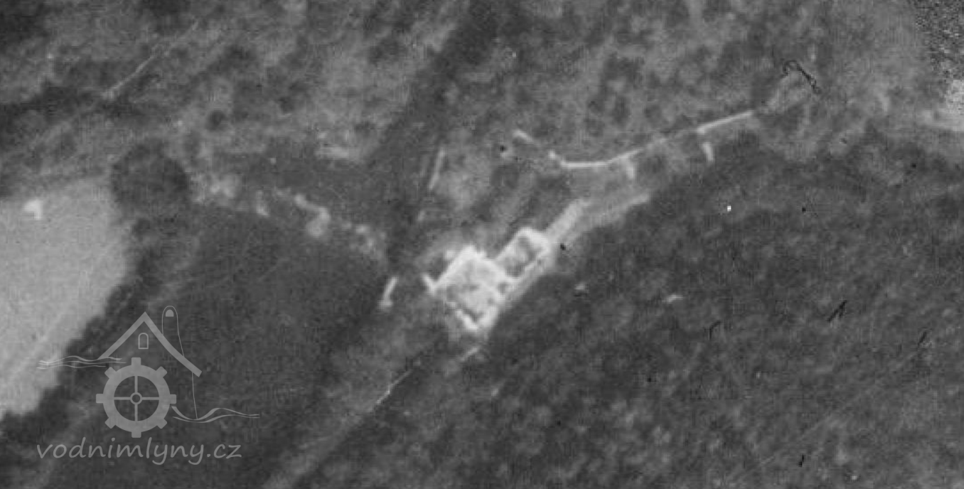 Na leteckém snímku z roku 1952 je již mlýn zachycen pouze jako zřícenina. (LR)