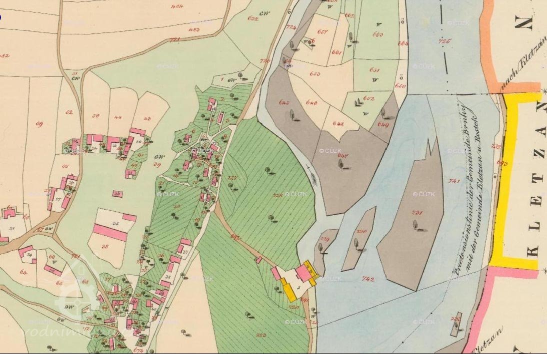1713 dominikální fase - v Roztokách 2 mlýny - mlýn na Vltavě (herrschaftliche grosse Mühle) a druhý malý panský mlýn (herrschaftliche kleine Mühle, dnes čp. 5)