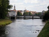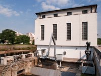 Součástí provozu mostu s válcovým jezem je na pravé straně elektrárna včetně náhonu a česel.