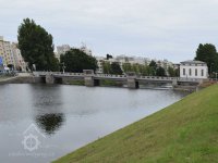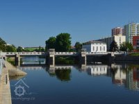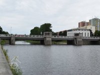 Na mostě se nachází dvouproudá vozovka a po obou stranách dlážděné chodníky. dobrém stavebně technickém stavu.