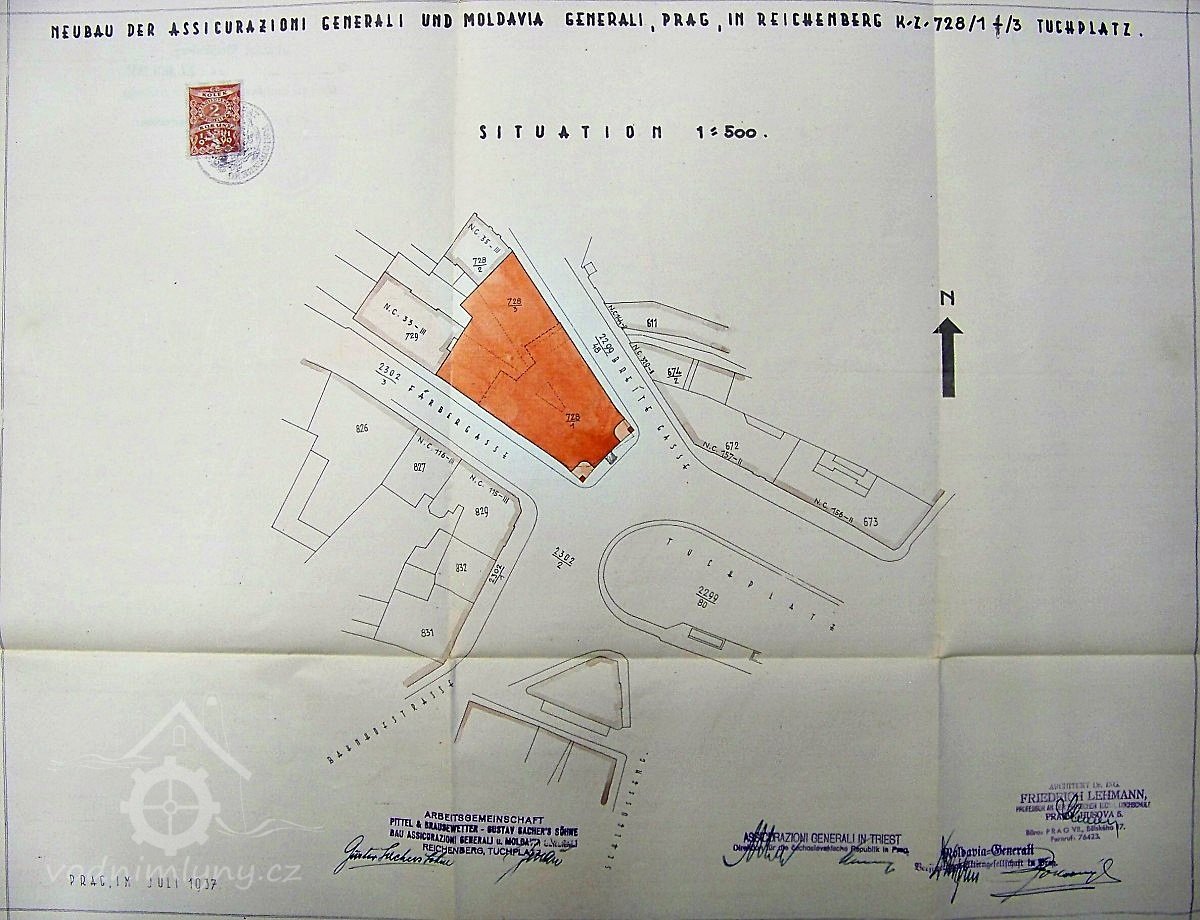 Renesanční mlýn byl za první republiky zbourán a místo něj postavena polyfunkční stavba v neoklasicistním stylu, tou dobou nejvyšší budova v Liberci. (PŠ)