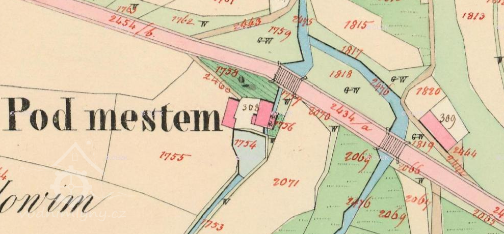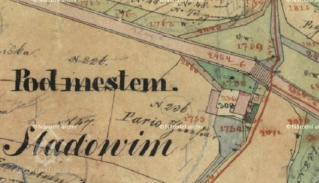 24. dubna 1816 smlouva mlynáře Jana Hovorky s hrabětem Josefem Františkem z Votley, majitelem konopišťského panství, jíž mu panství odevzdává strouhu vedoucí k mlýnu a svoluje, aby mu i „s nádržkou vodní neb rybníčkem při mlýně se nalézajícím náležela, proti tomu se on za sebe i své nástupce zavázal strouhu tuto čistiti, za to postoupilo mu panství dále část bývalého Sladovského rybníka ve výměře 6 strychů 9 1/2 měrky, pak mokřiny a jezero rákosím zarostlé ve výměře 6 strychů a 2 mírky, pastviště u toho a chobot rybníka, zapovédělo mu, aby vodu výše neudržoval než k místům, kde stály ony vysazené tři vrby, aby tím panská pole se nevytápěla"
