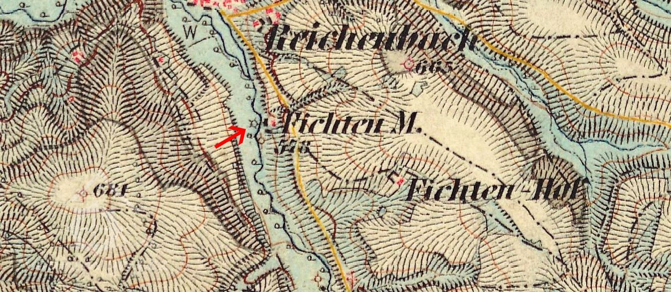 Mlýn vznikl někdy na přelomu 18/19. století. Na mapách z první poloviny 19. století je již uváděn. Souvisel s poblíž ležící starší osadou Fichtenhoff. Většinu času se však na mlýně řezala prkna pro nedalekou ves Bystřinu. (PŠ)