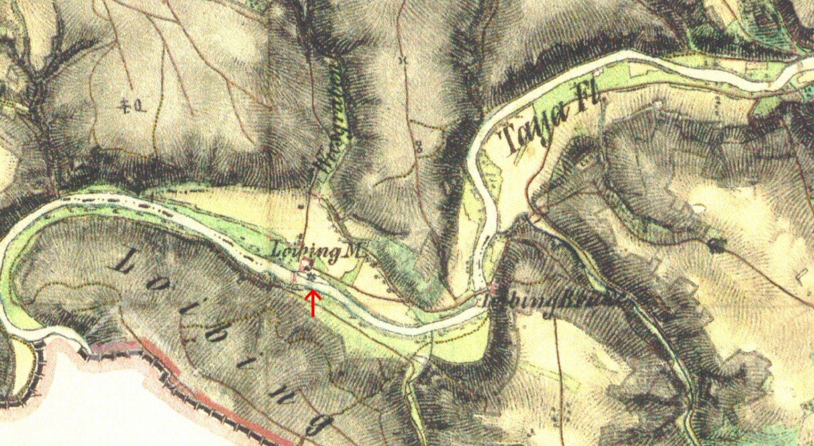 Als der Einsiedler eines Tages nicht mehr in der L o i b i n g m ü h l e erschien, um seine Milch zu holen, gingen die Müllersleute thayaaufwärts zur Höhle.