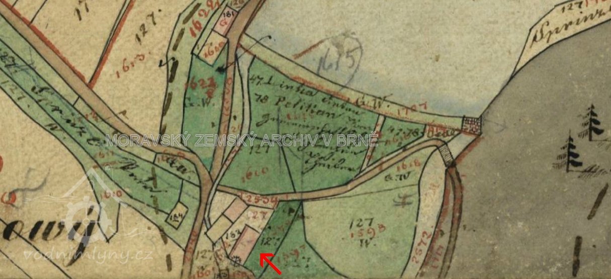 Rod Šprinclů se na Píšově mlýnu v údolí Vápovky objevuje v roce 1818, kdy mlýn koupil Petr, syn Ignáce Šprincla, rodák ze Šprinclova mlýna v Markvarci, který vystřídal svého předchůdce mlynáře Karla Radkovského. V této době je obcí Nová Říše nad mlýnem zřízen obnovený Píšův rybník za účelem chovu ryb a napájení mlýna hnací vodou. Za náhradu čtyři sta zlatých vídeňské měny byl přenechán k pobírání vody pro mlýn a pilu majiteli mlýna č. p. 127 Petrovi Šprinclovi.