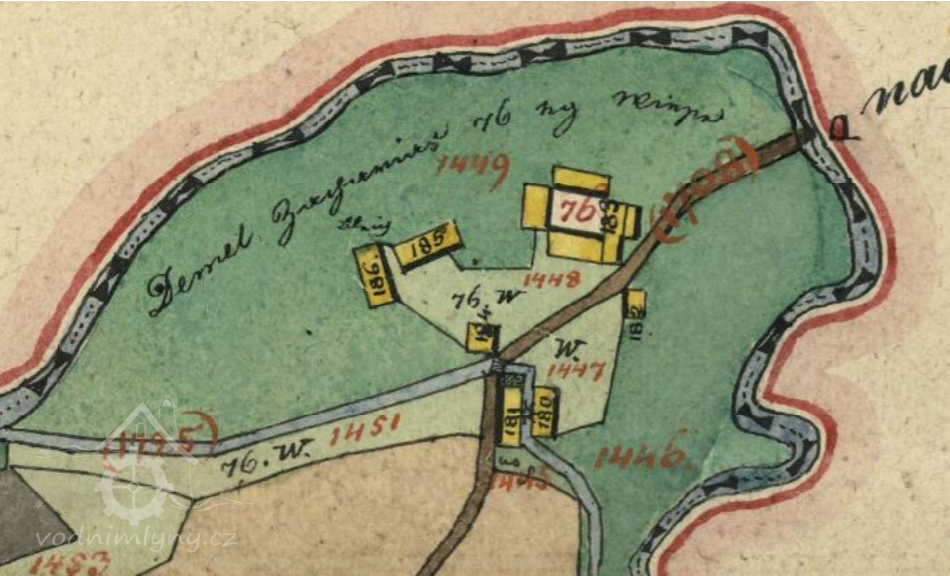 V roce 1930 uváděn šrotovník (Čermná 76) s kolem na horní vodu s výkonem 1,63 kW, mlynářem je František Demel