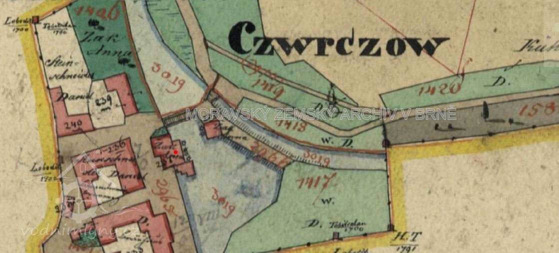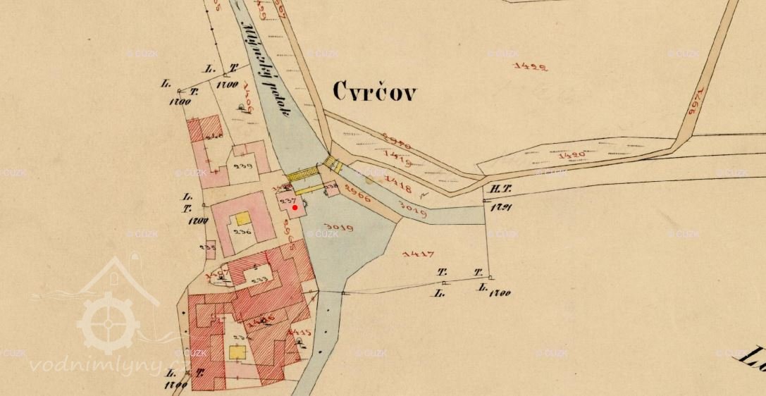 20.1.1538 Jan z Pernštejna na Helfštýně uděluje mlynáři Janovi místo na stavbu cvrčovského mlýna, dává mu stavební dříví ke stavbě a opravě mlýna z panských lesů lobodických, pastvu pro 12 vepřů, a 2 louky - vše za roční plat 7 kop grošů a ustanovuje, aby robotu vykonával stejně jako mlynář lobodický.