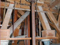 Převody od vodního kola, 2013, © Vodní mlýny na Frýdecko-Místecku, (Prvky na obrázku: transmise, řemenice, převody - transmisní hřídele s řemenicemi (výrobek průmyslový i řemeslný))
