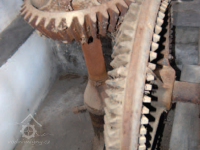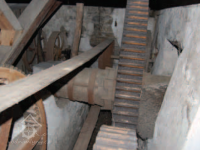 Pastorek, 2013, © Vodní mlýny na Frýdecko-Místecku, (Prvky na obrázku: transmise, řemenice, převody - paleční kola, pastorky a cévníky (řemeslný výrobek))