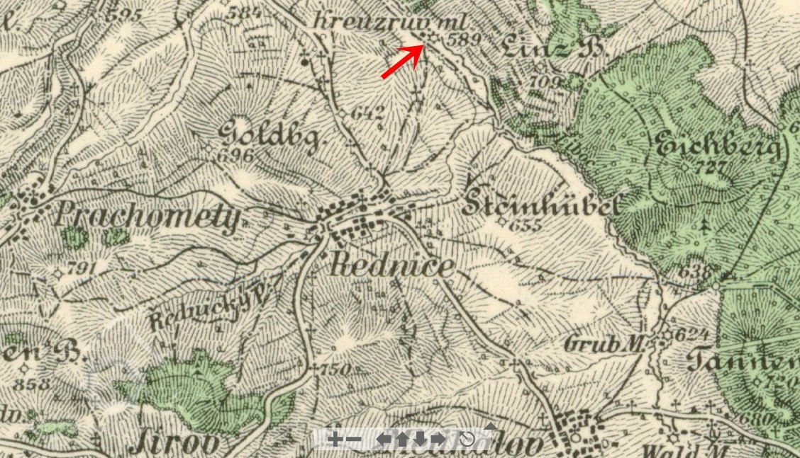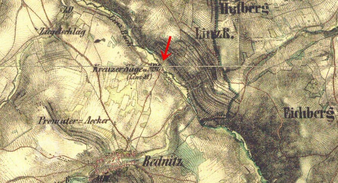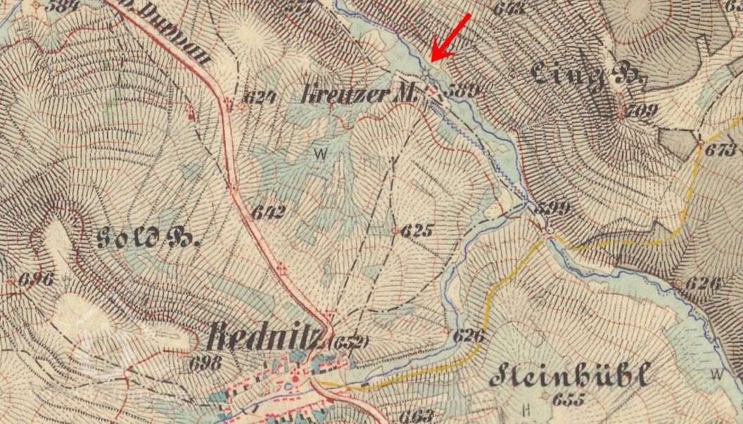 U zříceniny Kreuzerova mlýna se měly ještě v roce 2003 nacházet zbytky kola.