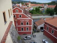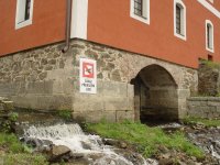 "My Petr z Rožmberka ... vyznáváme tímto listem ... , že předstoupili jsú před nás múdří a opatrní purgmistr a rada jménem vší obce města našeho Krumlova ... a zpravili nás, kterak jsú sobě mlýn udělali se dvěma kolama u Horní brány v tom příkopě na té vodě, kteráž dolův pod mostem z Vlatvy padá, prosíc nás pokorně, abychme jim k tou povolení dali a toho mlýna k témuž městu potvrdili."