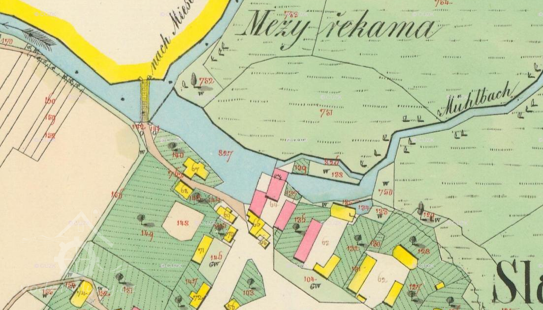 Původně mlýn a pila, nyní pila. Náhon veden unikátním akvaduktem přes Metuji.