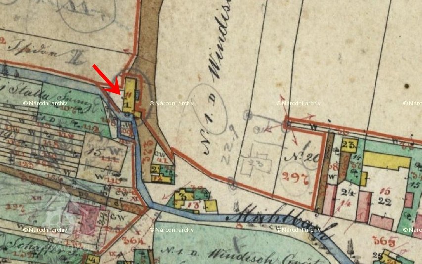Z údajů Indikační skici Stabilního katastru z roku 1843 vyplývá, že mlýn patřil k majetku Windischgrätzů, kteří od roku 1838 vlastnili vintířovské panství.