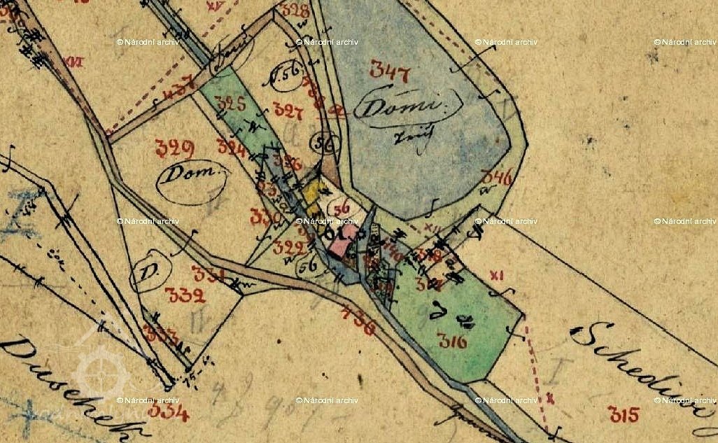 mlýn měl původně čp. 47, po revizi 1805 nese dosavadní čp. 56