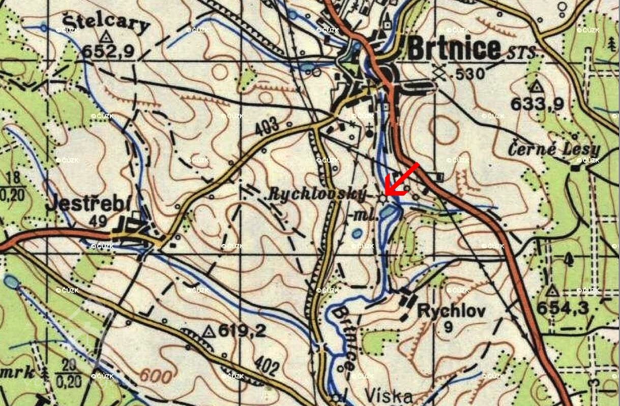 Šimánkův mlýn pod Rychnovským rybníkem s výměrou 2,34 ha. na katastru Rychlova (č. p. 12) severně od obce je doložen již roku 1653, kdy na něm byl mlynář Doubek, a pak k roku 1655.