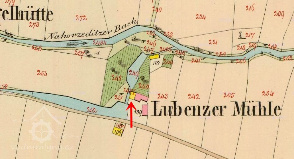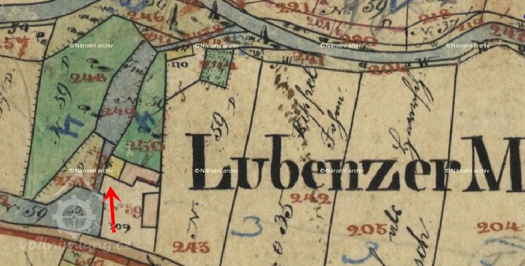Roku 1654 se mlýn v Lubenci uvádí jako pustý o dvou staveních, ale jen jednom kole moučném. Majitelem mlýna byl v té době Bartoloměj Gregl.
