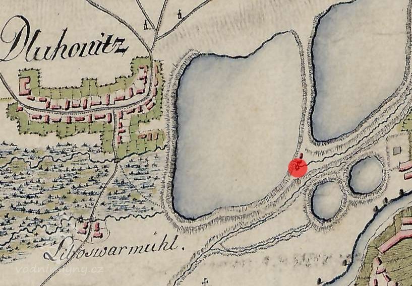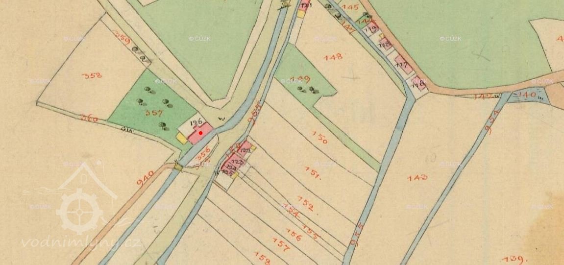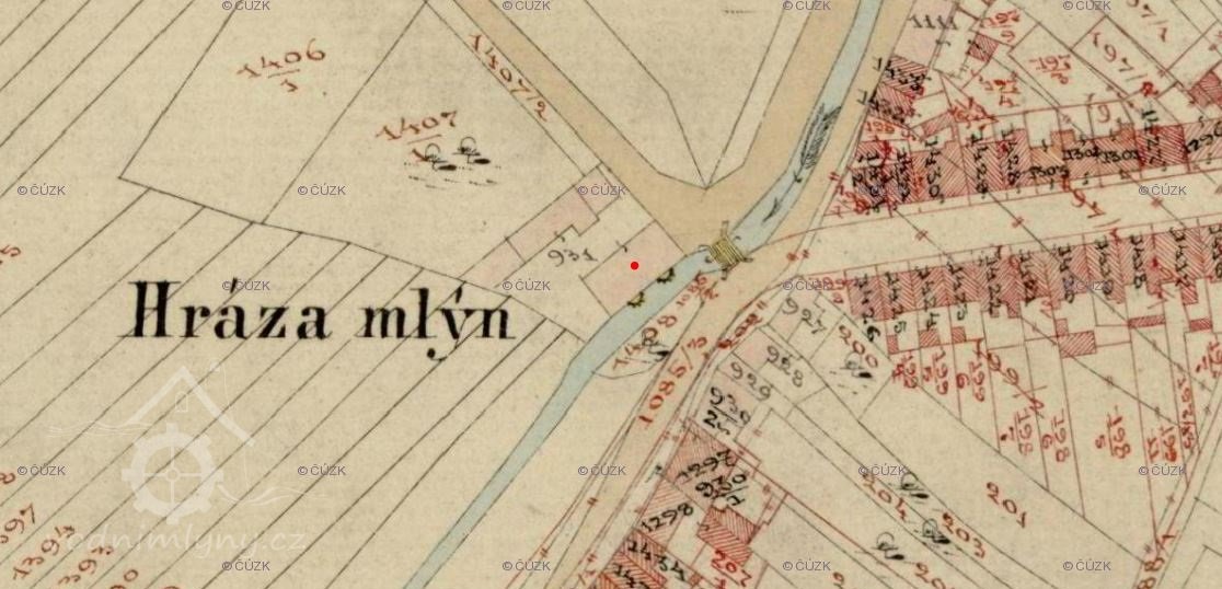 Mlýn původně založil roku 1728 Tomáš Piškora a byl nazýván Hrázní. Pod hrází, již dnes neexistujícího Hrubého rybníka.