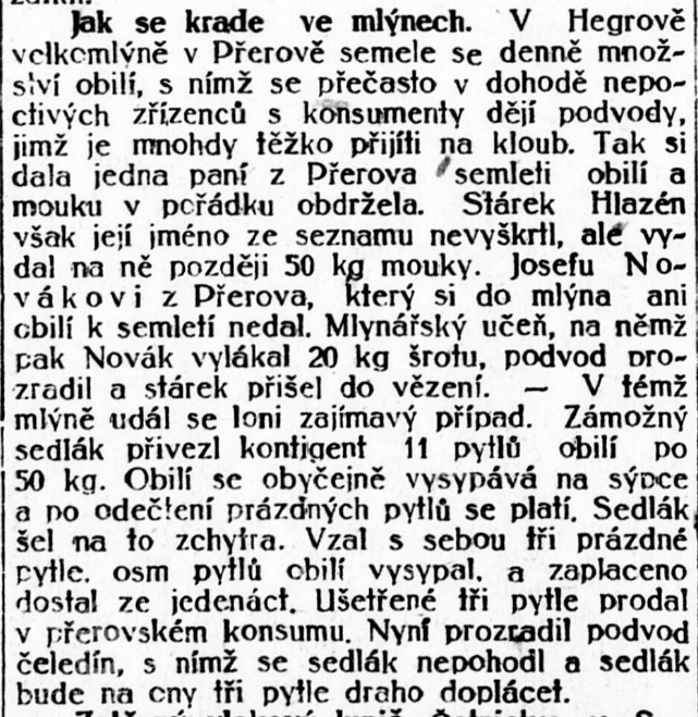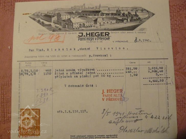 V r. 1923 převzal mlýn K. Kryška, ale firma J. Heger zůstala až do roku 1947. Pracovalo zde 18 dělníků a pohonné síly se zvýšily na 166 HP (údaje z r. 1926).