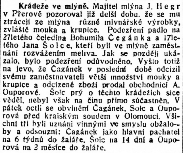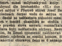 1891 stárek Josef Beneš rozmačkán mlýnskými koly. (RR)