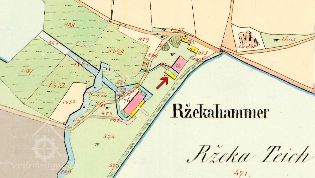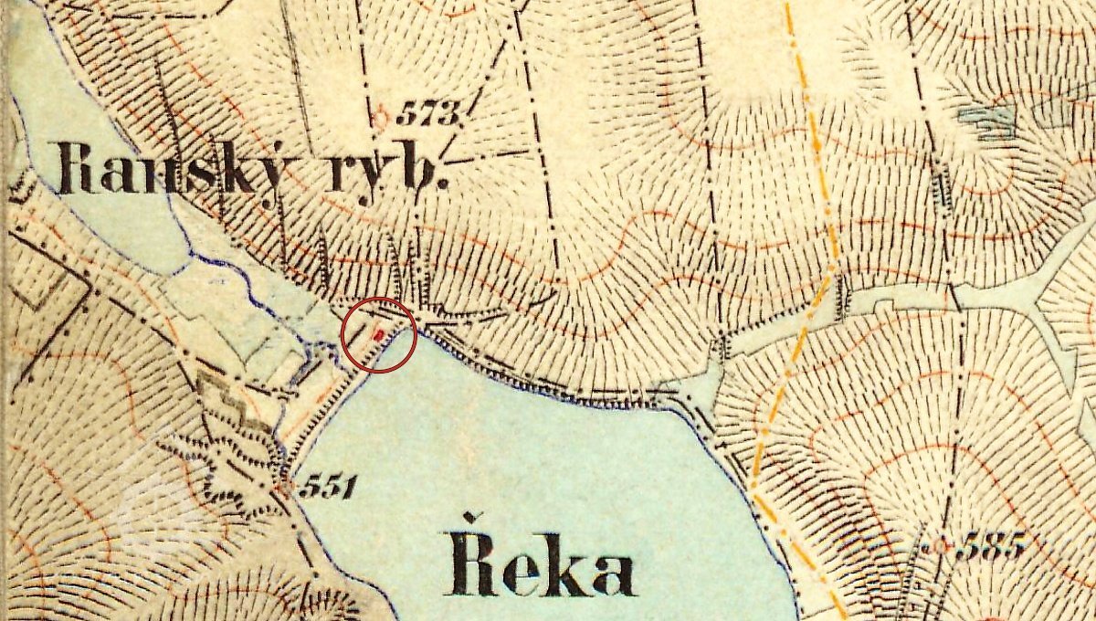 "Mlýn pod rybníkem Řeka (pozn. řecký mlýn) u vzniku řeky Doubravky u Hluboké připadl panství polenskému koupí statku krucemburského. Nalézal se pod velkým rybníkem, tedy na stálé vodě. Mlýny toho druhu měly závadu, že byl-li rybník loven na podzim a přišla brzo tuhá zima, nenaplnil se až z jara při tání sněhu.