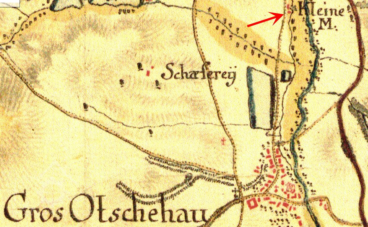 Klein Mühle byla tehdy poměrně veliká hospodářská usedlost. Vedle prosté jednopatrové budovy vlastního mlýna byla součástí statku i sušárna chmele, kterou Vladimír Borč zpočátku využíval, dále sýpka na obilí, maštal, kde měli Borčovi dva páry koní, chlév pro dobytek se čtyřmi kravami a pěti ovcemi a byly tu také chlívky pro prasata – zděné budky. Bylo jich vedle sebe asi čtyři nebo pět. Vpředu nad prasečími chlívky stál rozměrný dřevěný holubník. „Mladší bratr tam jeden čas holuby skutečně choval. Úplně vzadu byla kůlna s cirkulárkou na dřevo a uhlí. K mlýnu patřil i obrovský klenutý sklep, kde jsme měli uloženy brambory, řepu a zvlášť také jablka. Do sklepa se chodilo po schodech. Právě ten sklep se před dvěma lety propadl. Dovnitř do mlýna a obytných prostor se vcházelo ze dvora.