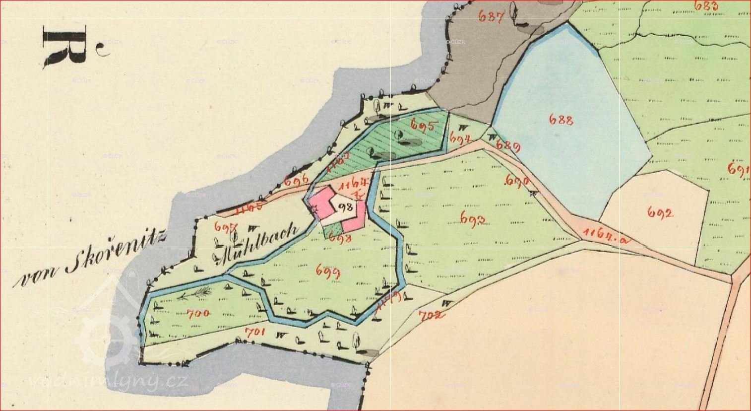 Popis1930: 1 kolo na svrchní vodu, hltnost 0,108 m3/s, spád 5,8 m, výkon 5,42 HP