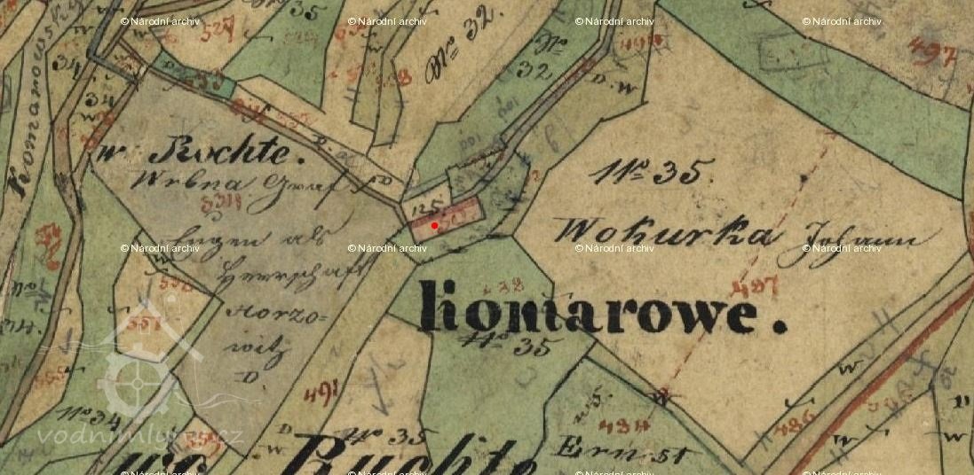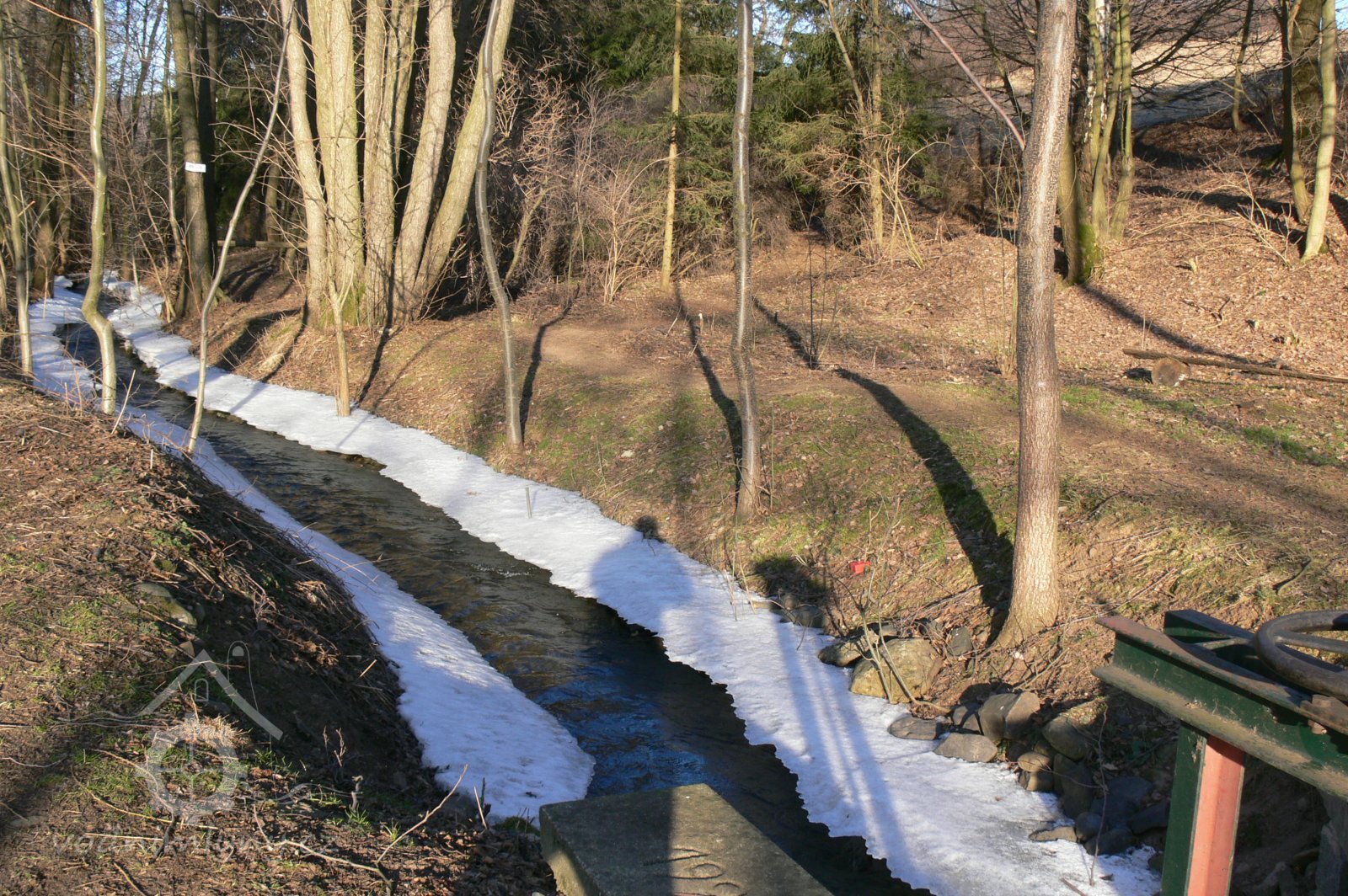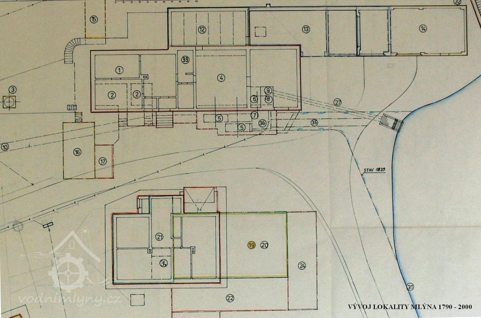 Energeticky nejvhodnější bylo místo v blízkosti areálu dnešního mlýna, na které navazovala druhá odpadní stoka, směřující z pravé části hráze severním směrem. Napovídá tomu i tvar dna nádrže. Tato odpadní stoka, dlouhá přes 300 m, byla vedena přes údolí zpět do toku Jalového potoka, do kterého ústila před místem dnes zvaném V Brodu. (Mapa J. A. Kolbeho z roku 1756 zachycuje doprovodnou vegetaci kolem stoky. Trasa stoky zůstává patrná ještě na katastrální mapě z roku 1839.)