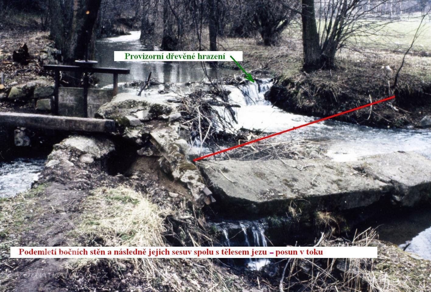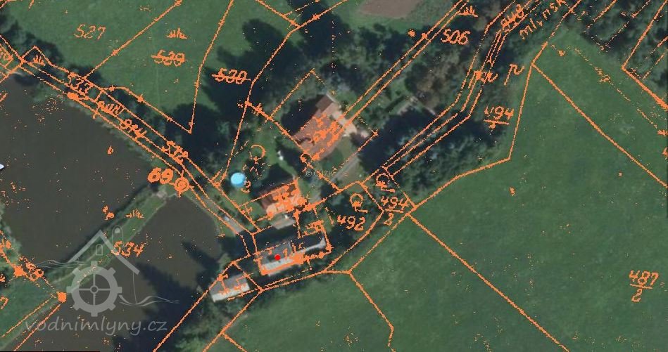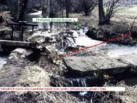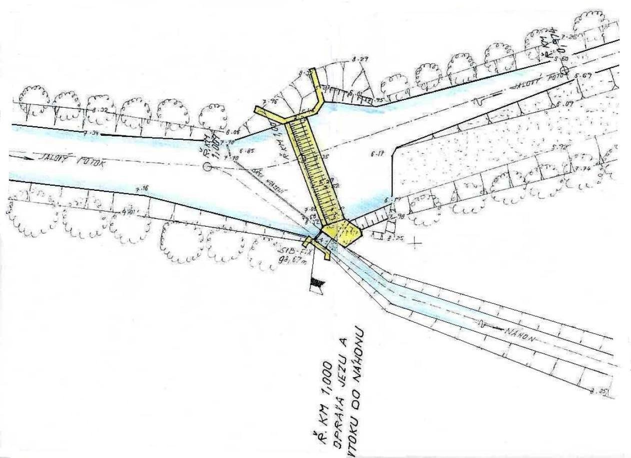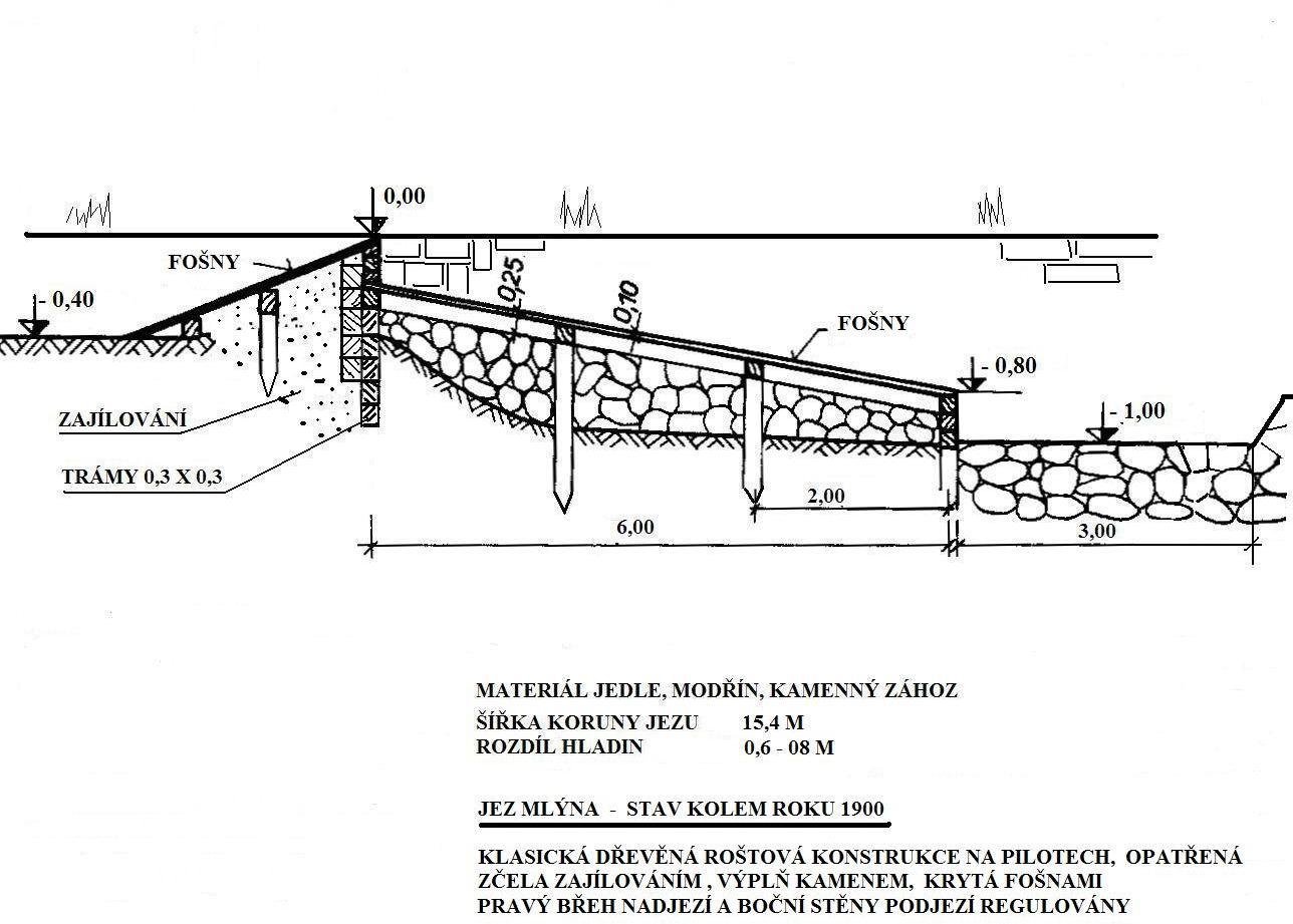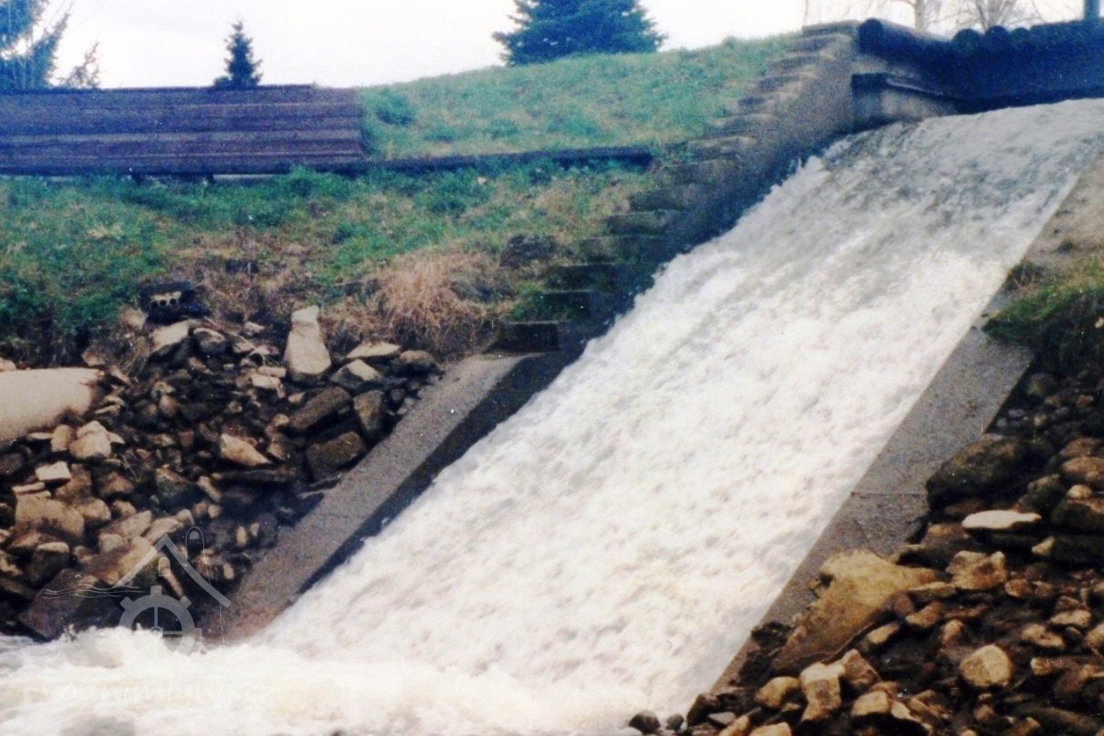 O využití původního vodního díla na západní straně vodní nádrže, dnes nazývané „dolní“, vypovídá zákres odpadní stoky délky přibližně 70 m. (Účelová terénní úprava, která v daných podmínkách spolu se spádem hlavního toku umožňuje dosažení maximálního výkonu.) Zde také byla v roce 1995 v toku Jalového potoka obnažena povodní zděná regulační stěna. Při nedávné opravě odpadu pak několik okovaných pilotů.)