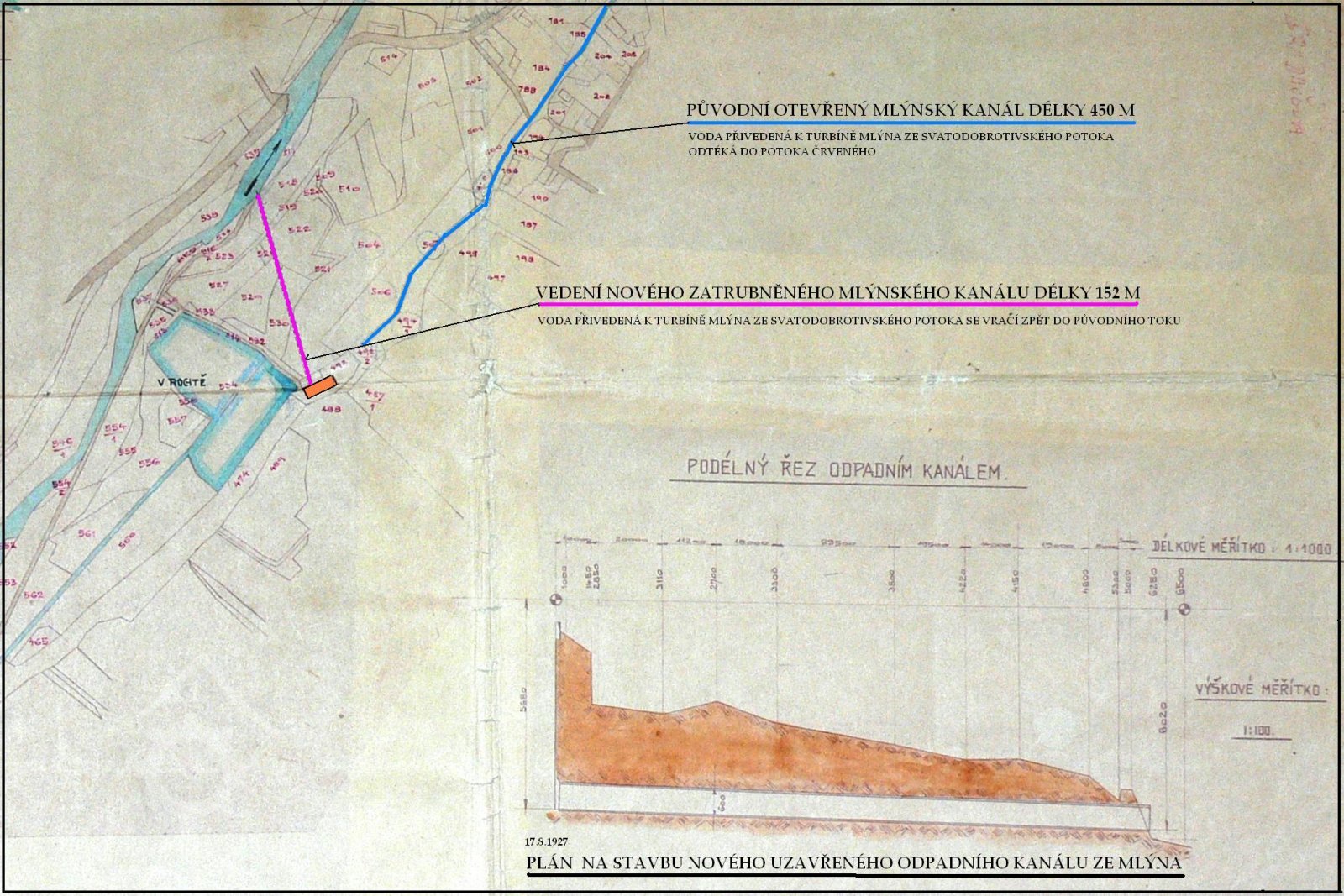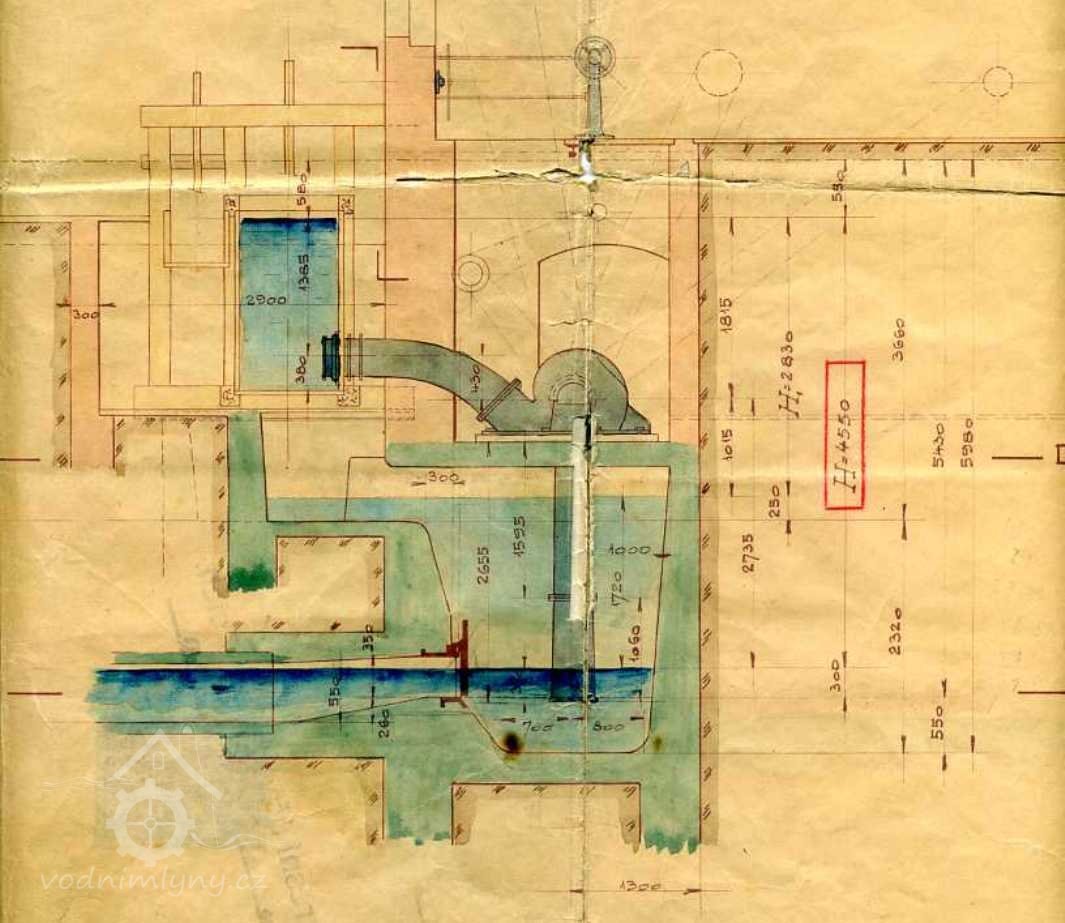 V roce 1947 byla do vodní kašny, postavené uvnitř budovy mlýna, instalována nová turbína s nátokem z vodní nádrže pod hladinou. Dříve otevřená odpadní stoka byla zrušena. Byla nahrazena potrubím délky 450 m, položeným do ručně kopaného výkopu hloubky tří až šesti metrů. To přineslo vyšší spád a umožnilo neomezený bezúdržbový provoz i v zimním období. Nad trubním vedením byla zřízena nová přístupová cesta ke mlýnu.